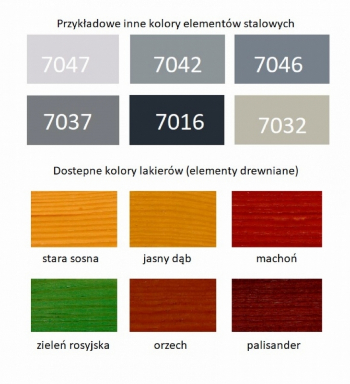 | Wykończenie elementów stalowych | podkład cynkowy,malowanie proszkowe |
